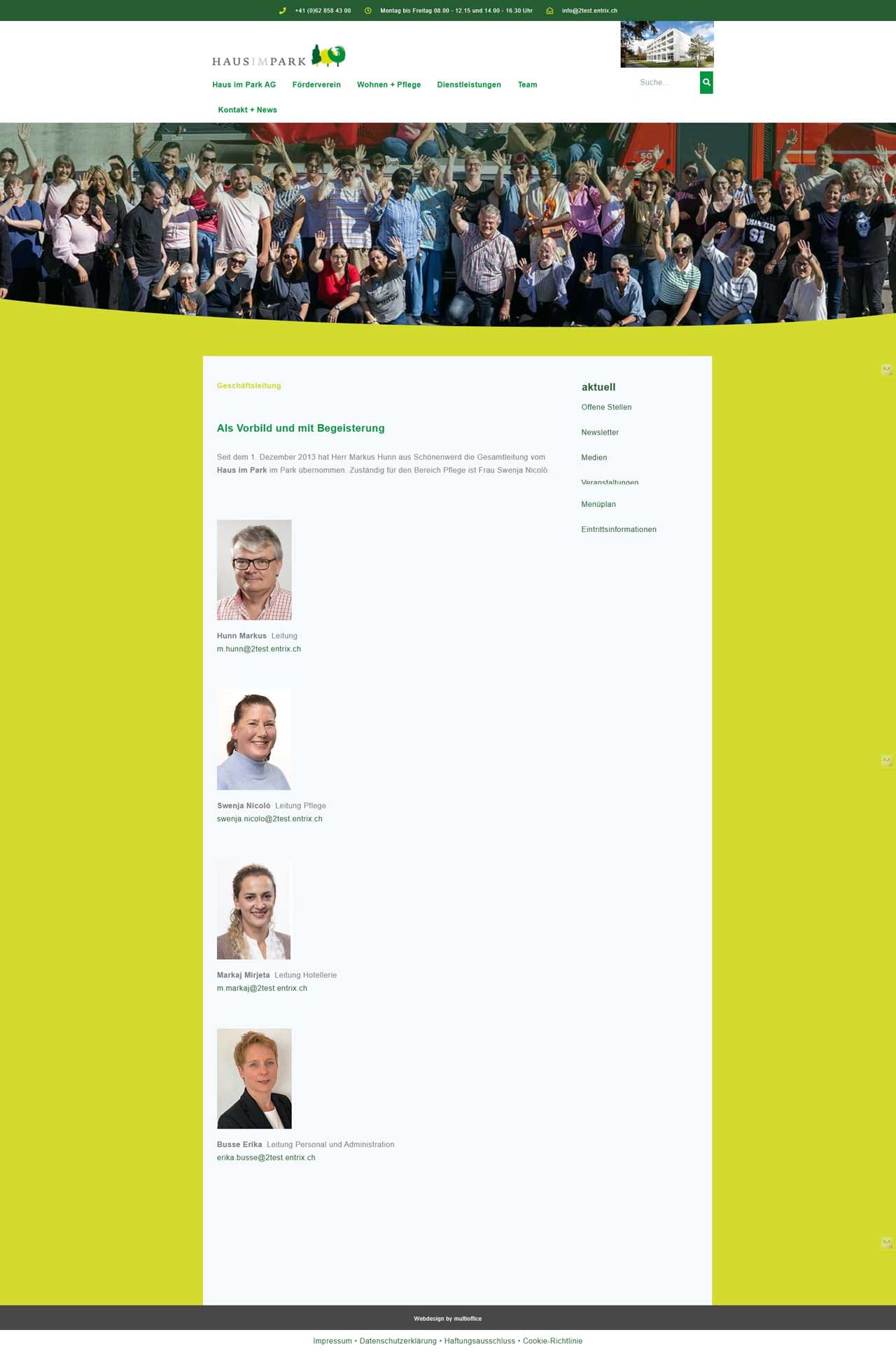 Anfangs 2026 durfte ich den Relaunch der Website hausimpark.ch „Regionales Alters- und Pflegeheim in Schönenwerd“ in Angriff nehmen. Die alte Website wurde im Jahr 2020 erstellt. Der Fokus lag auf der Verbesserung der Barrierefreiheit, damit die Website für ältere Menschen besser zugänglich ist.